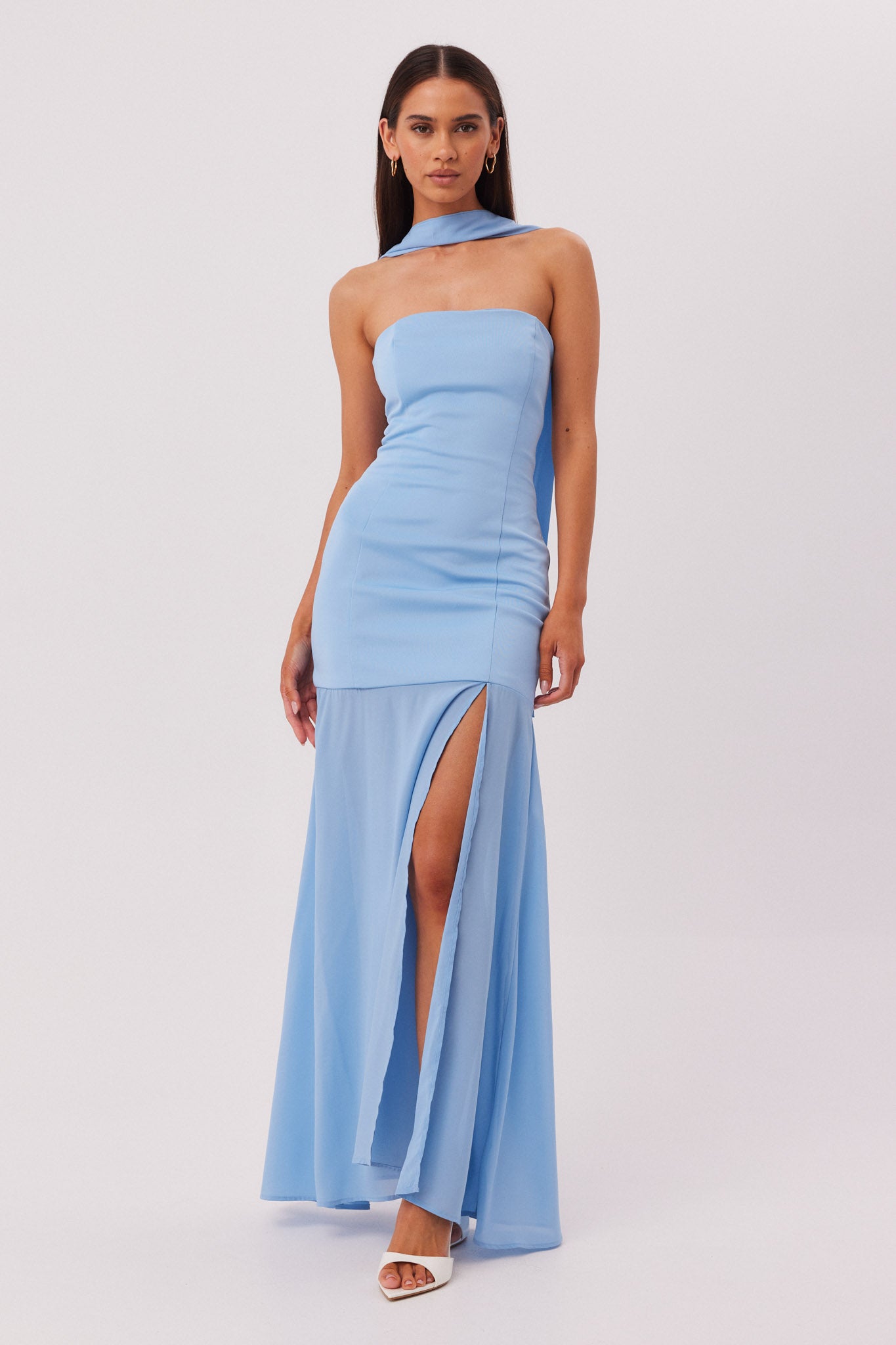 Floaty skirt panel with front side slit in semi sheer chiffon fabrication