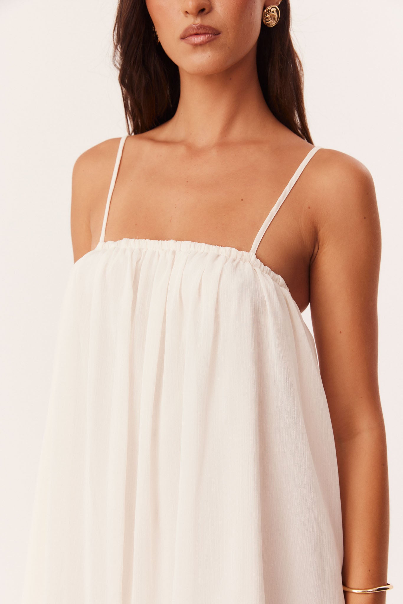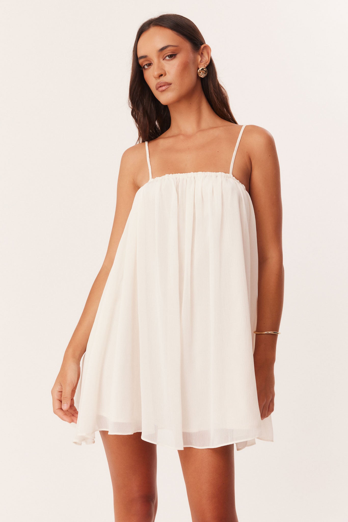 Mini length babydoll dress with elasticated neckline