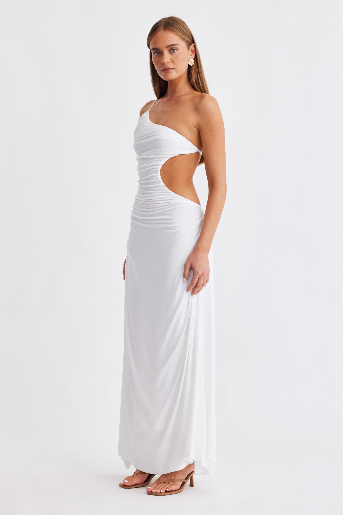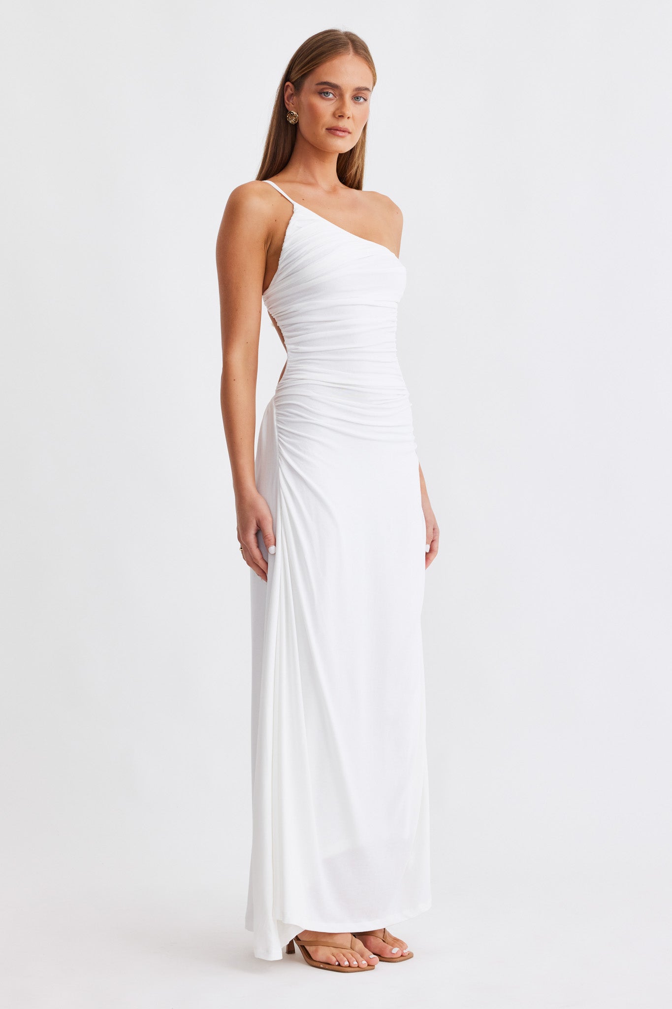 Exuding confidence and femininity, meet The Monaco Dress. This one shoulder moment features an exposed back, side cut out and gathered ruching creating a timeless and sophisticated look. Compliment the look with refined accessories and let The Monaco speak for itself.