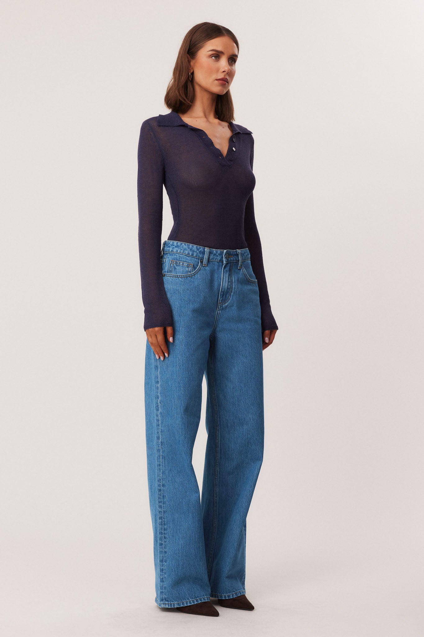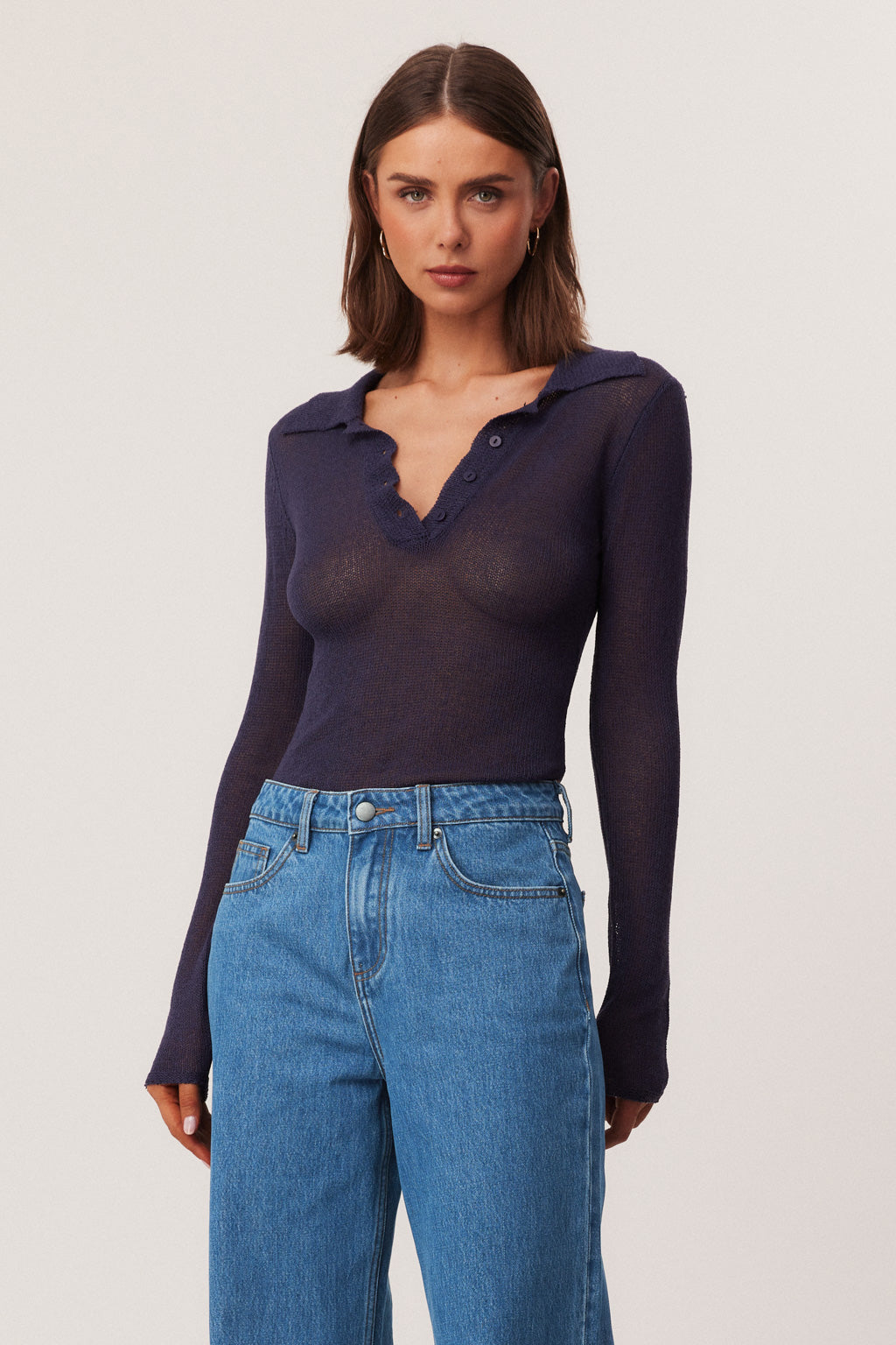 Polo style top with collared neckline and button opening